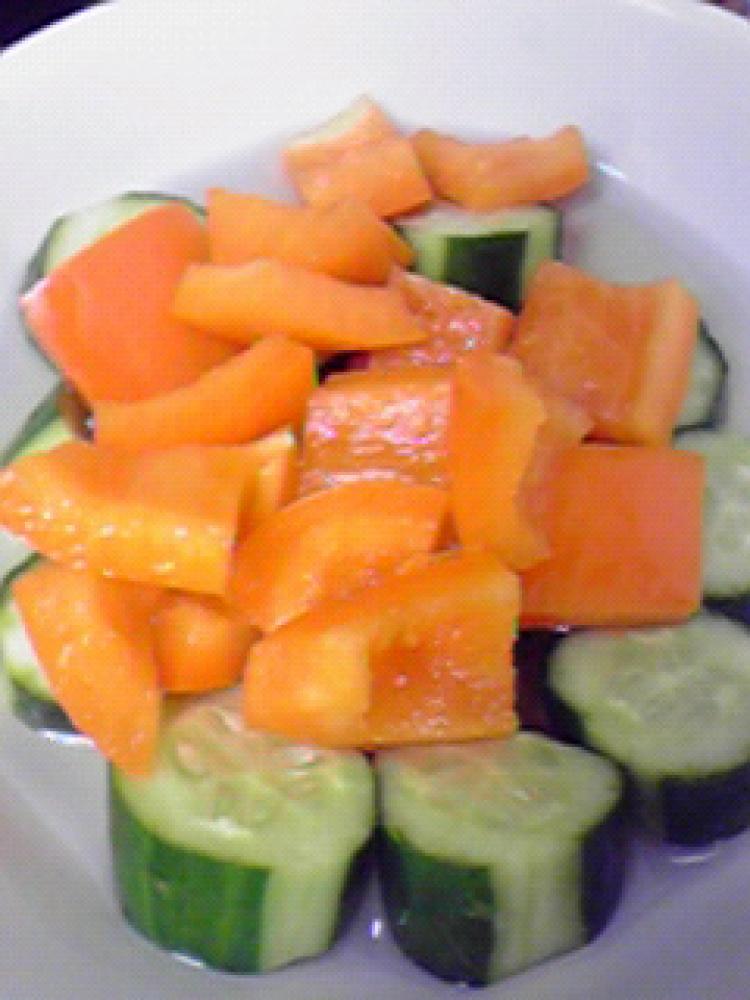 きゅうりとパプリカをつけ、2時間ほど冷蔵庫で冷やします。