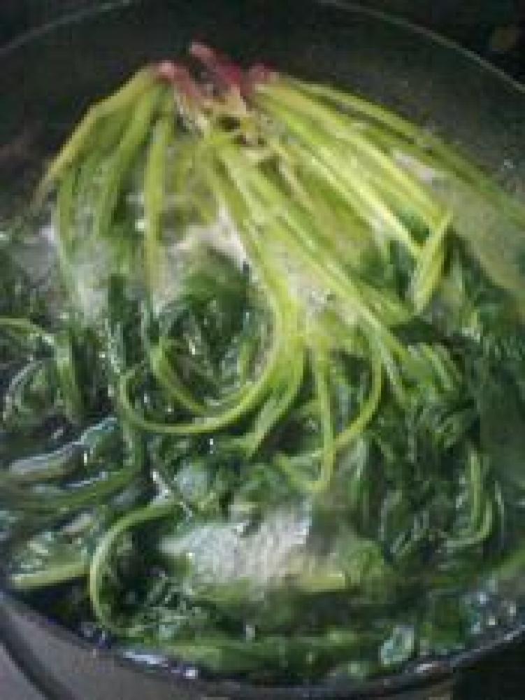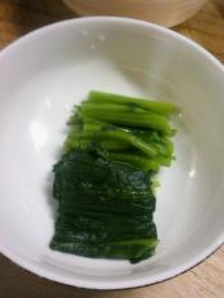 ![]() ホウレン草はたっぷりのお湯に塩を一つまみいれ茹でます。茹で上がったら冷水に取ります。冷めたらぎゅっと絞ります。