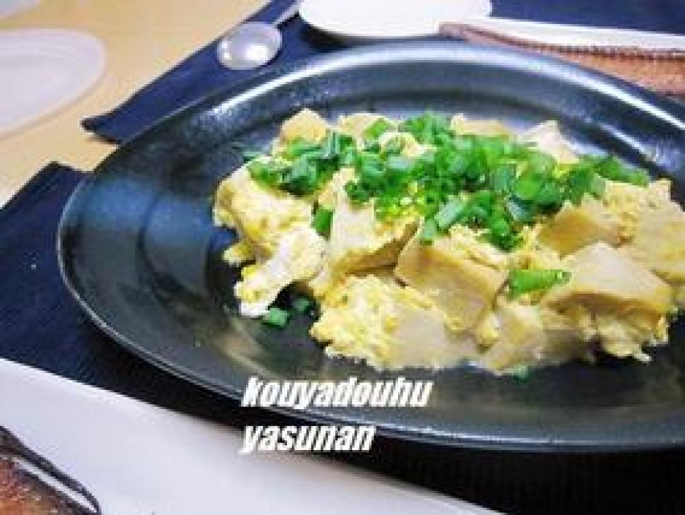 高野豆腐はぬるま湯で戻し、一口大に切る。