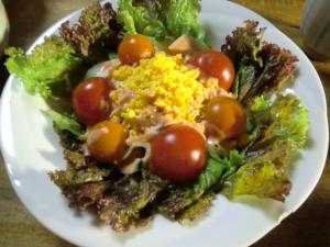 サニーレタスは洗ってよく切った後、食べやすい大きさにちぎります。