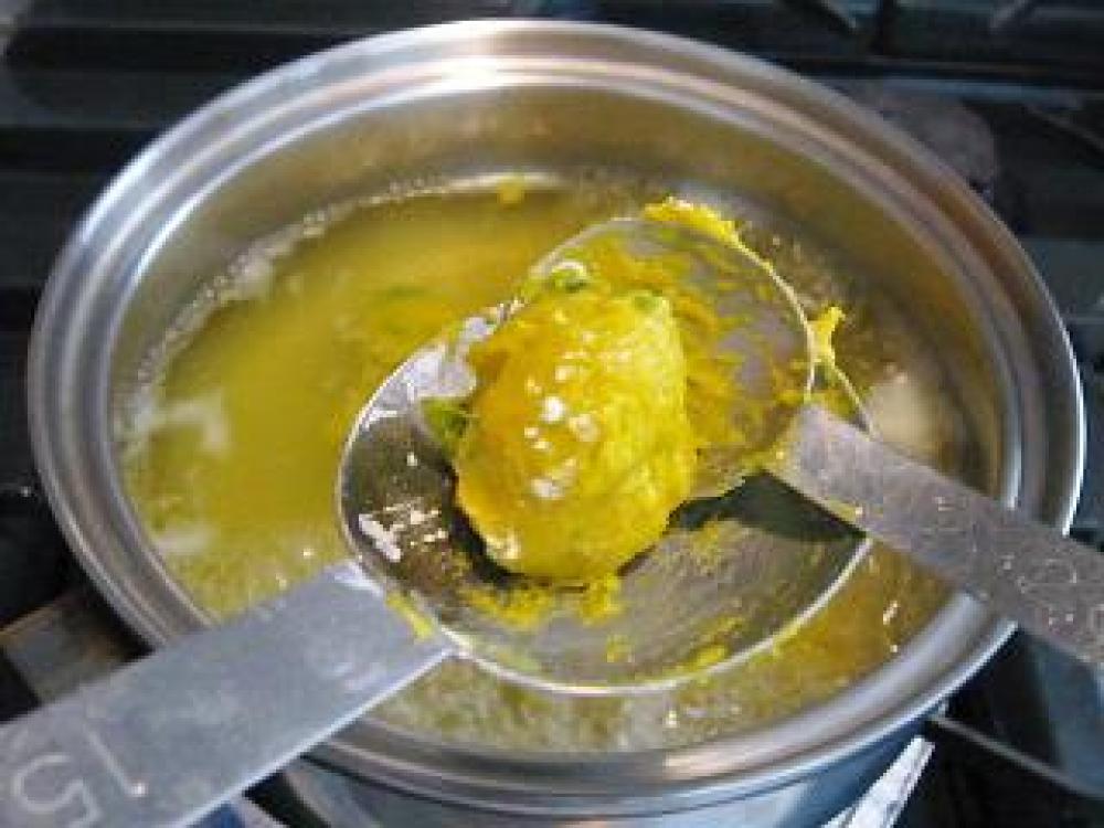 ![]() ①をひと口大にしてまるめ、沸騰させた