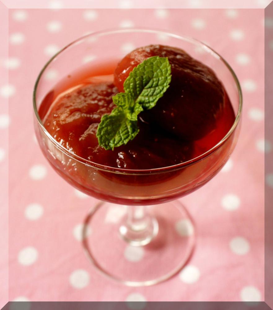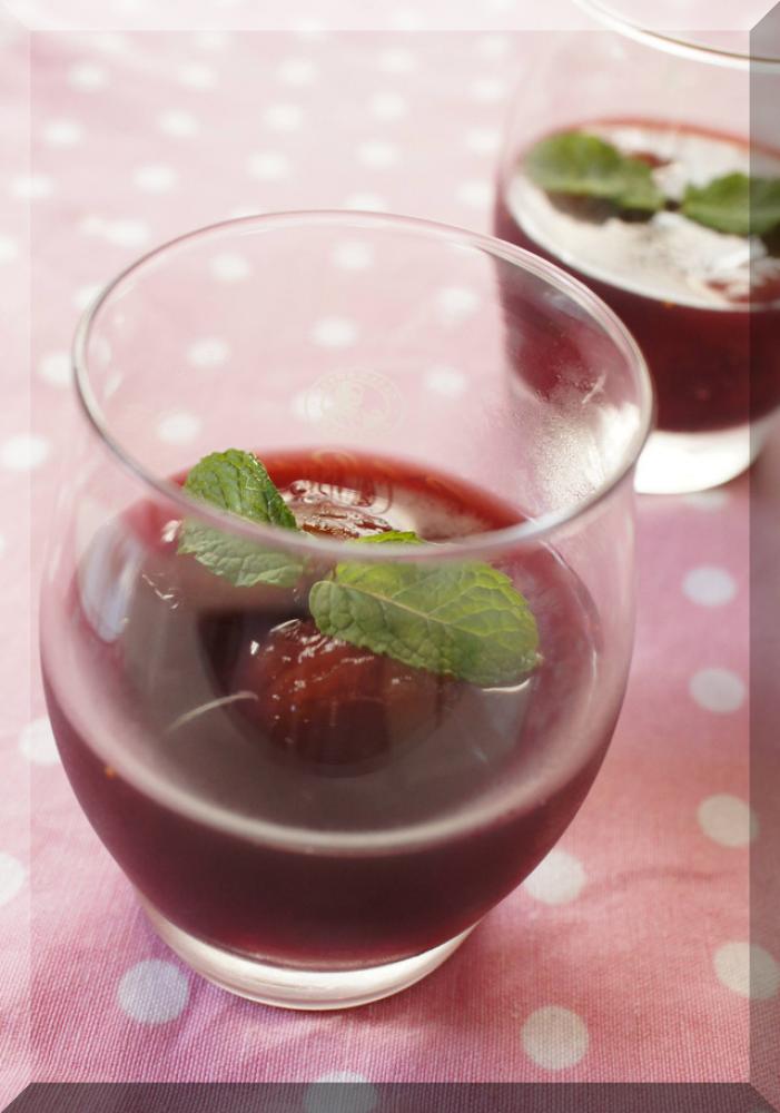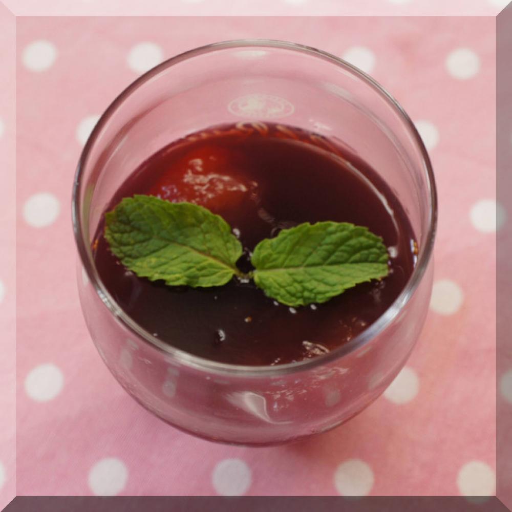 ![]() 粗熱がとれたらゼリー容器に注ぎ冷蔵庫で冷やし固めます。ミントの葉を飾ります。