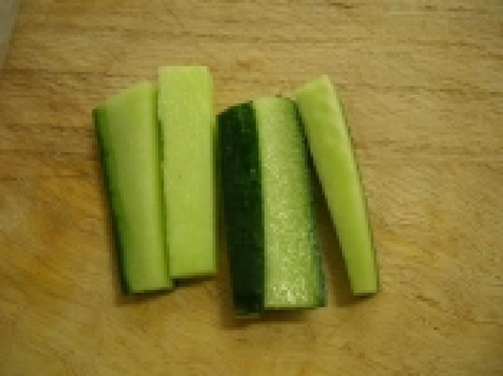 ![]() キュウリは1cm角に切ります。