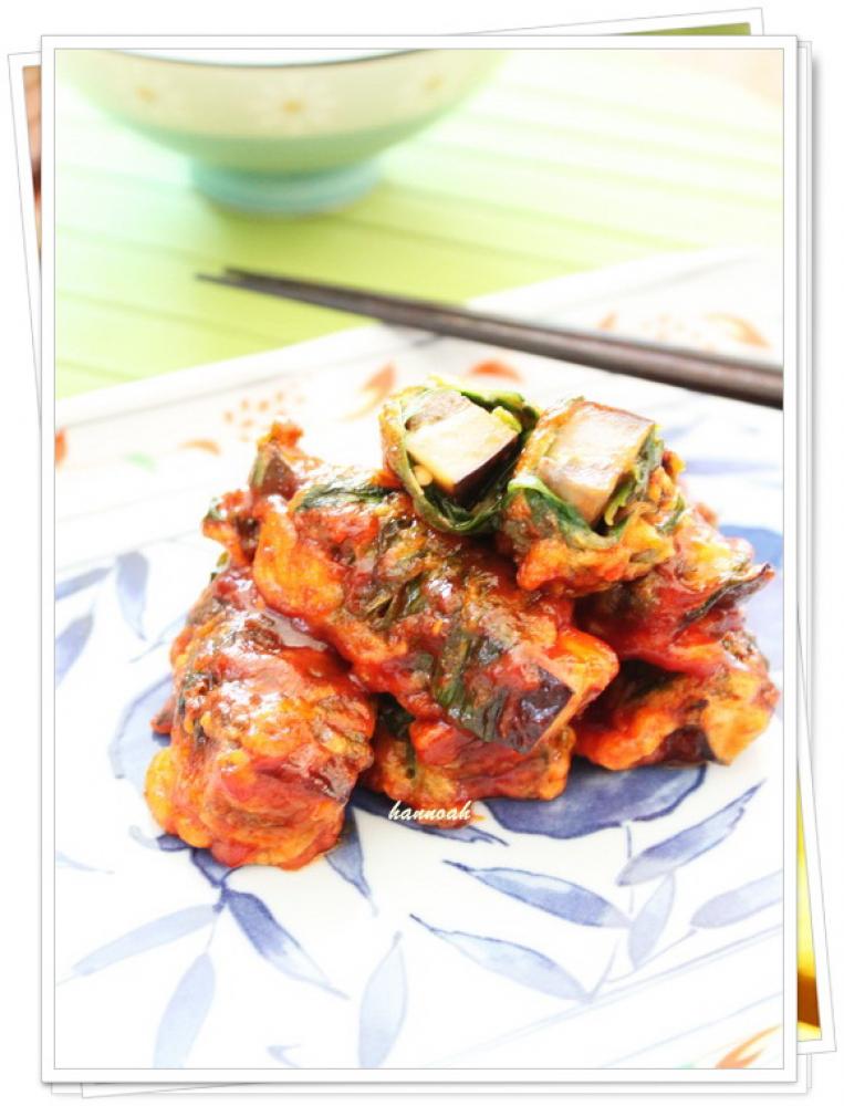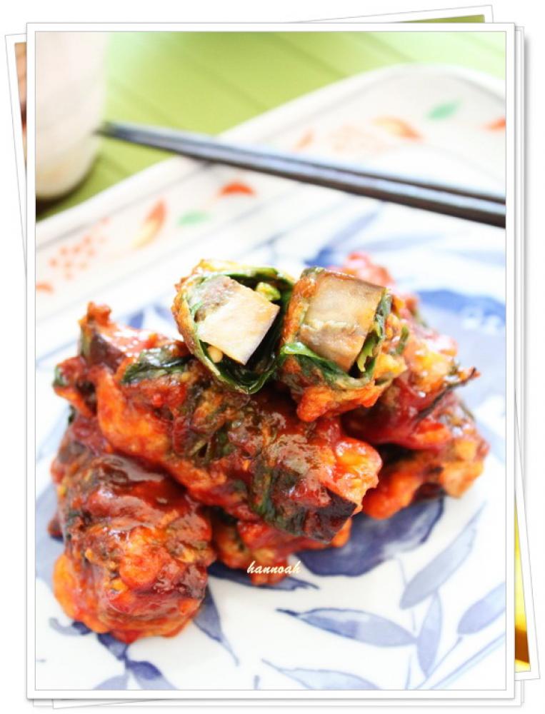 ![]() 衣用の調味料を合わせ、油を熱したフライパンで揚げ焼きし、油をきっておく。