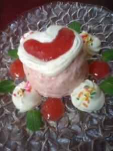 冷え固まったババロアを型からはずし、生クリーム、ストロベリーソース、ミントの葉でデコレーションしてください。