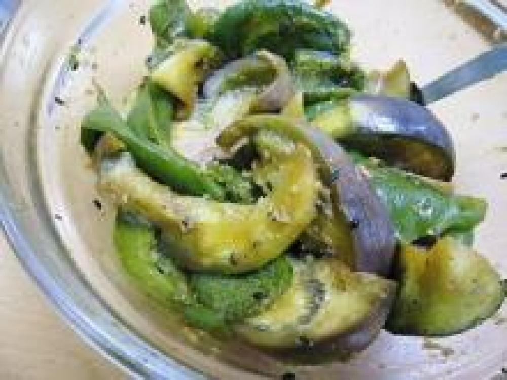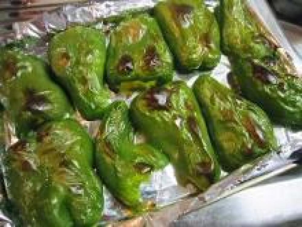 ![]() ピーマンは、縦半分に切り種を取り、トースターで皮が黒くなるまで焼き(目安8分)、黒くなった薄皮をむく。