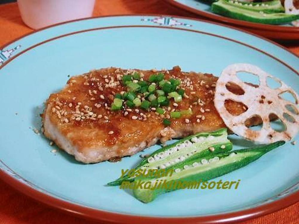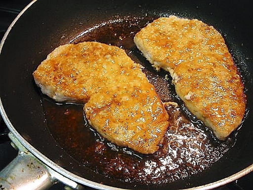 ![]() マカジキに塩、コショウをふり、小麦粉を薄くつける。油を熱したフライパンで両面に焼き色をつける