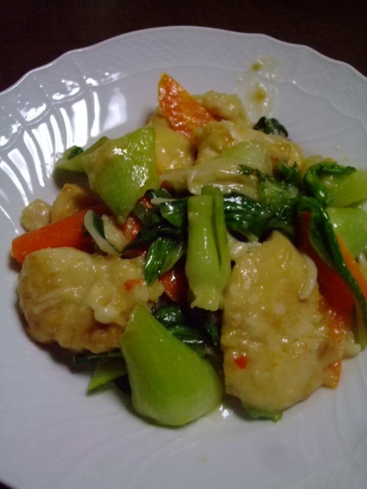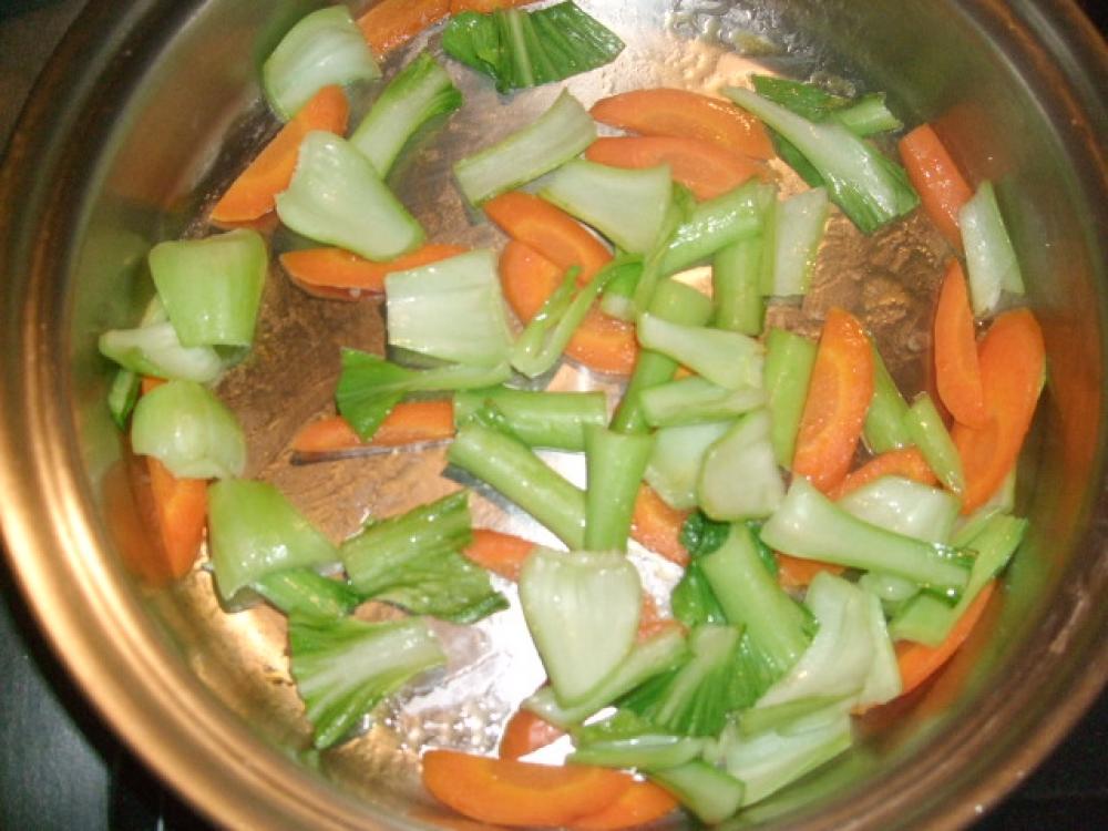 ニンジン、青梗菜の茎の順で軽くサッと炒め取り出します (色鮮やかになる程 |