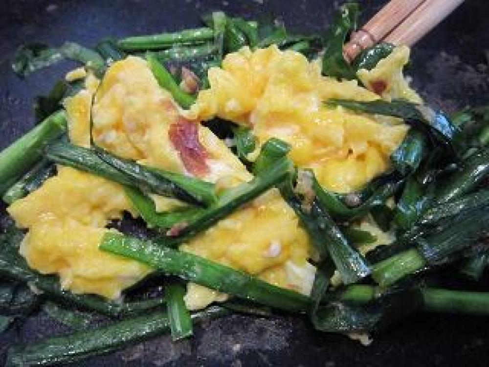 ![]() ニラを入れてさっと炒め、Aを加えて混ぜ、火を止めて2を戻して軽く混ぜる。