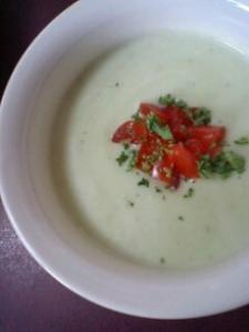 フードプロセッサーに1と牛乳を入れ、なめらかになるまでかけて、塩、コショウで味を調えます。