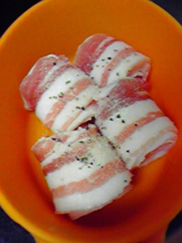 ![]() 豚バラ肉はクルクル巻きます。