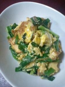 厚揚げは、熱湯をかけて油抜きし、ひと口大にちぎります。卵は割りほぐします。Aの調味量は合わせておきます。