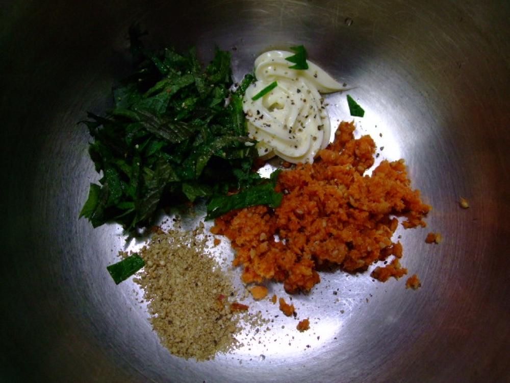 冷めたら、②のボウルに入れ混ぜ合わせます |