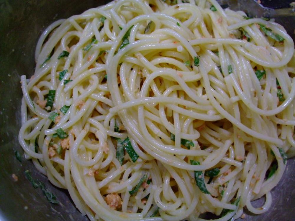![]() パスタをアルデンテでザルに茹であげ流水ですすぎしっかりと水切りをします