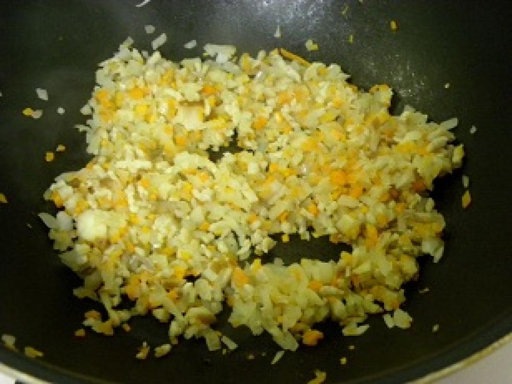 たまねぎが透き通ったら、グループAのその他の材料を入れ、全体になじむようによく混ぜ、さましておきます。