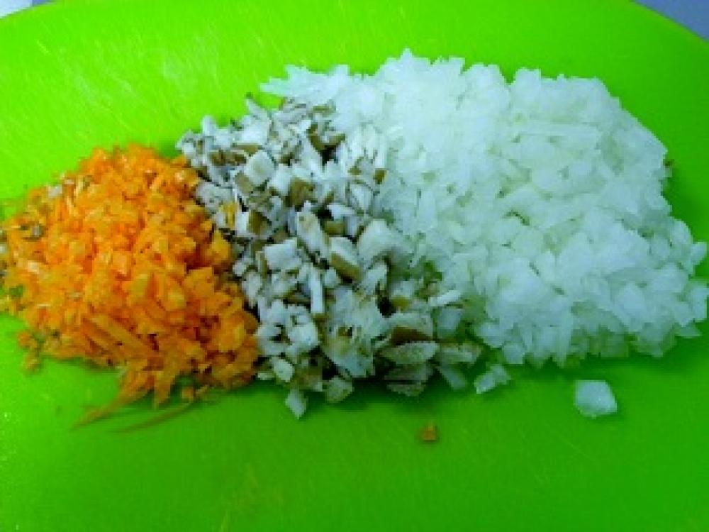 ![]() たまねぎ、にんじんは洗って皮をむき、生しいたけは硬く絞ったふきんでかさを拭きいしづきを落とし、共にみじん切りにします。