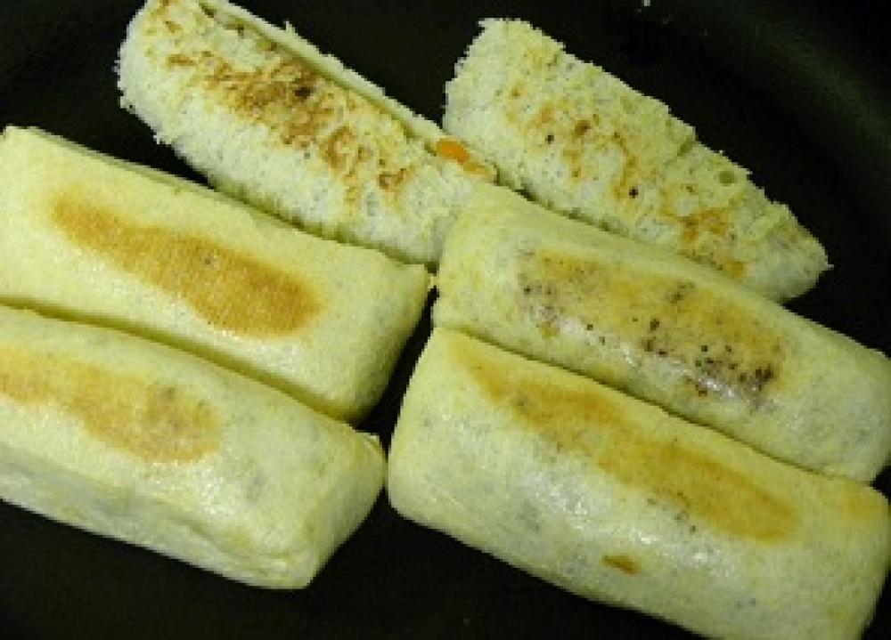 ![]() 温め中火にしたフライパンで、転がしながら全体に程よい焦げ目をつけます。