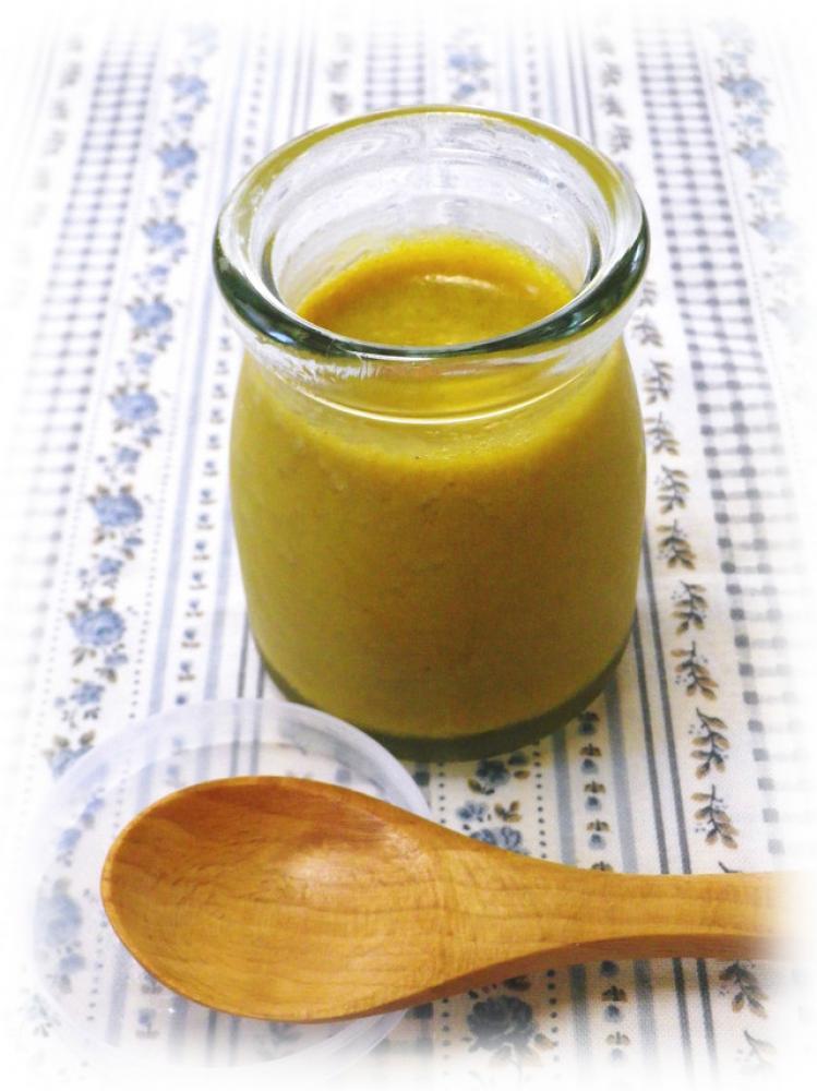 南瓜ペーストに豆乳80ccを少しずつ入れ撹拌します。 ラカント・シナモン・ラム酒を加え混ぜます。