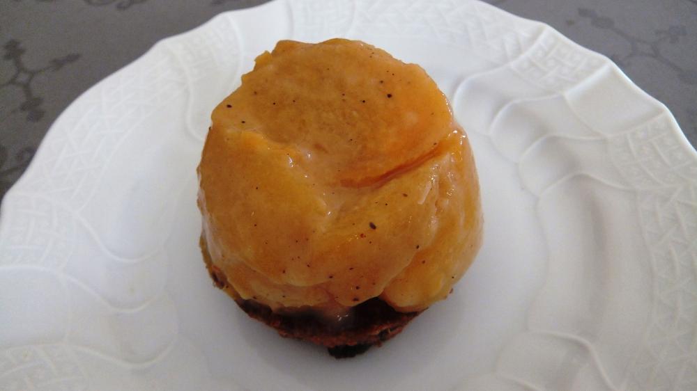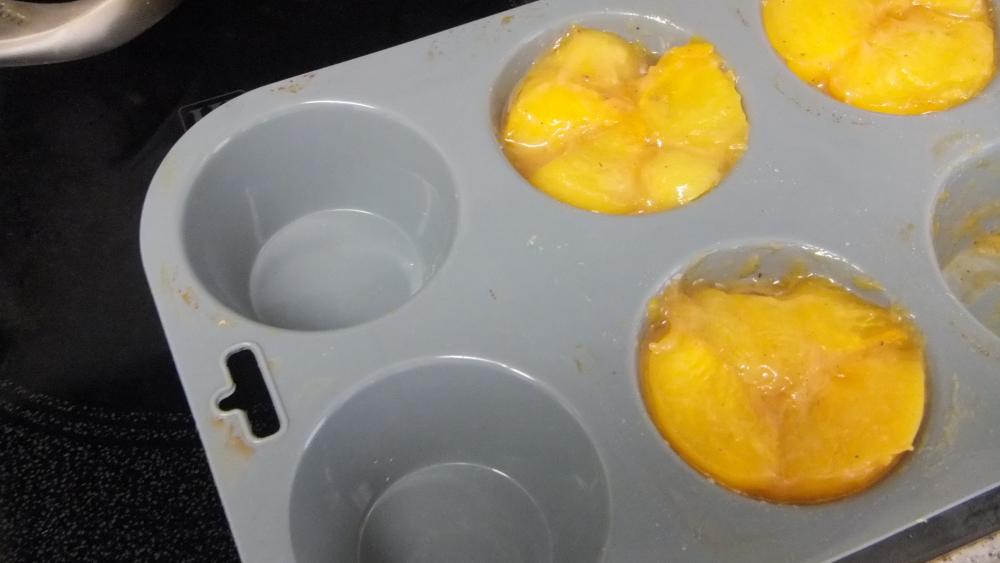 ![]() ソテーした柿を型に詰めて冷やす。型は水羊羹の器やマフィン型などでよい。