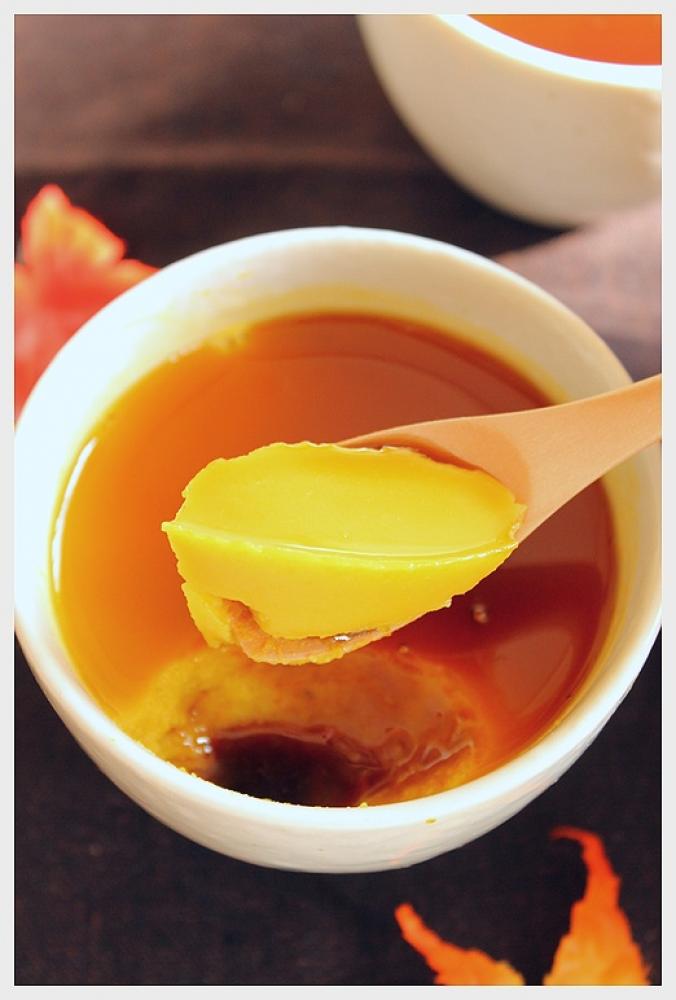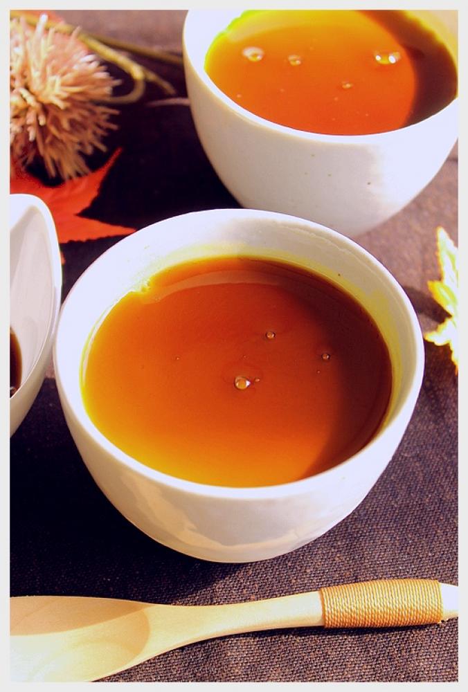 ![]() 7が冷やし固まったら、黒蜜をかけます。