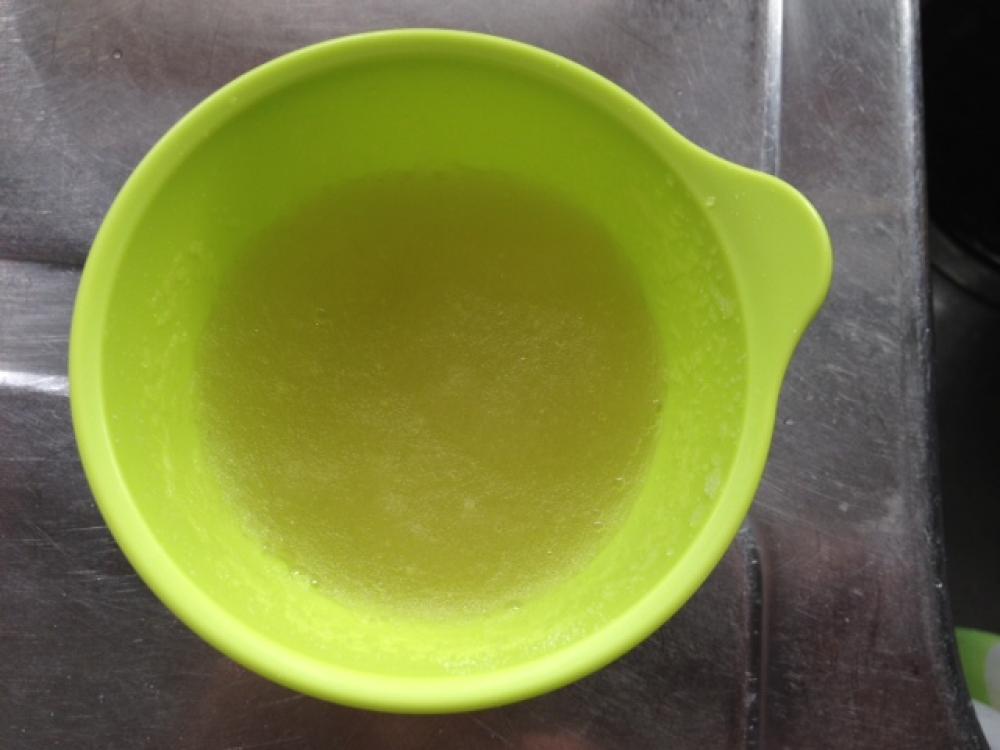 ![]() ゼラチンは水を入れて軽く混ぜてからふやかします。