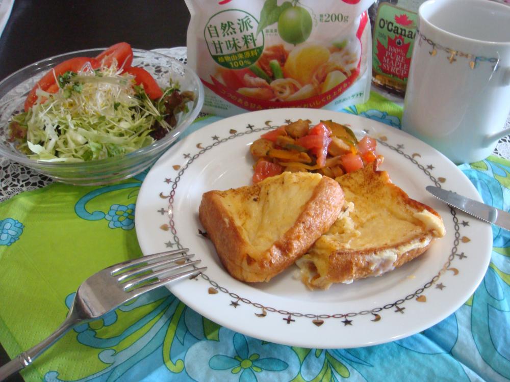 付け合せにはきのこ、野菜、ソーセージのソテーとサラダを加えましたが、好みのお野菜料理やスープ等とあわせるとバランスのよい