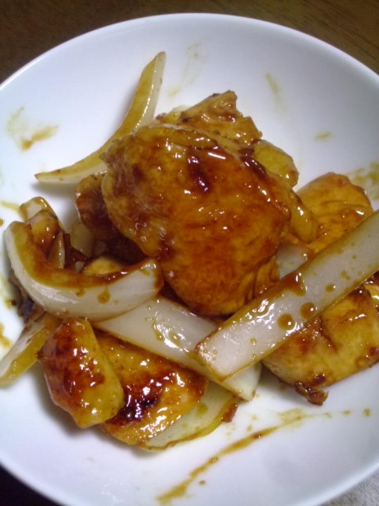 ![]() タマネギを加えて、サッと混ぜて出来上がりです
