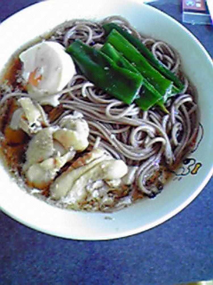 器にそばをいれ、おつゆをたっぷりかけます。