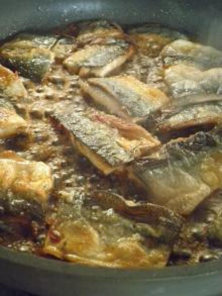 ![]() フライパンにサラダ油を中火で熱しサンマは皮目を下にして並べ、色よく両面焼き、ラカントすき焼のたれを加え ツヤがでて煮汁が