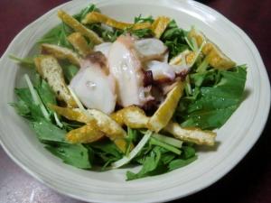 タコは削ぎ切りにし、水菜は3~4cm長さに切ります。