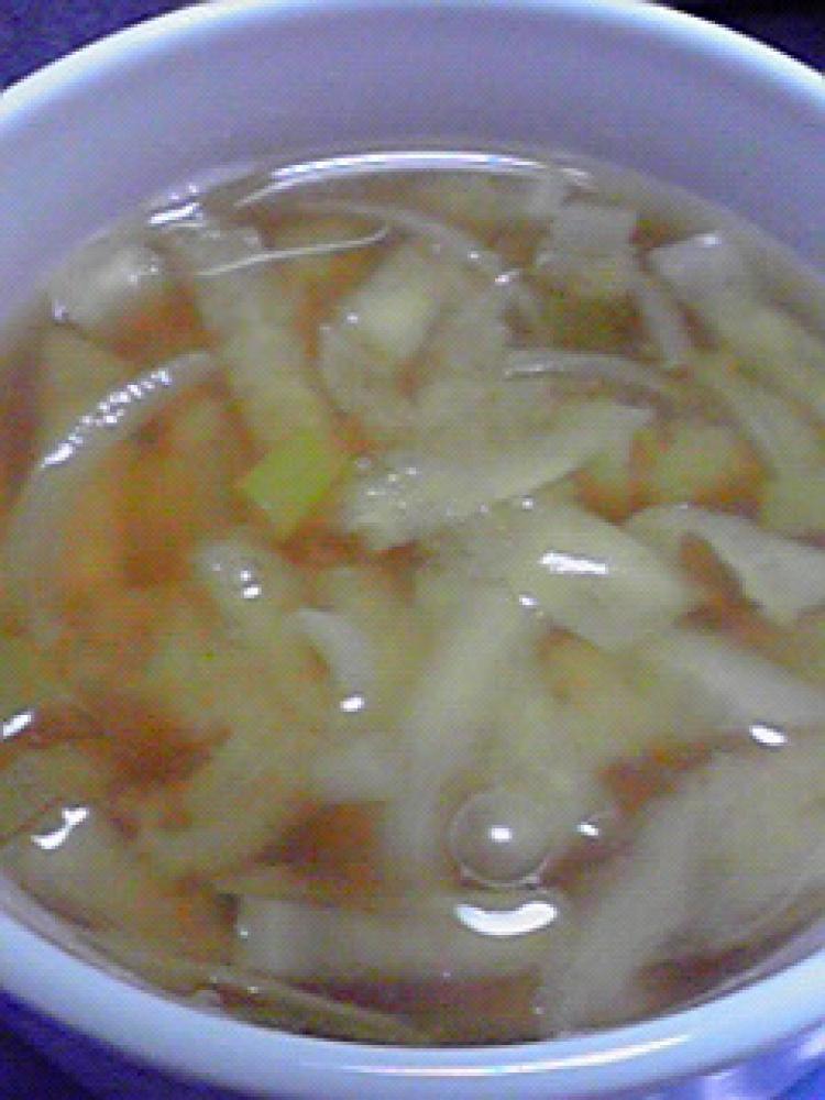 大根は細切りにし、ねぎは小口切り、玉ねぎは薄切りにします。