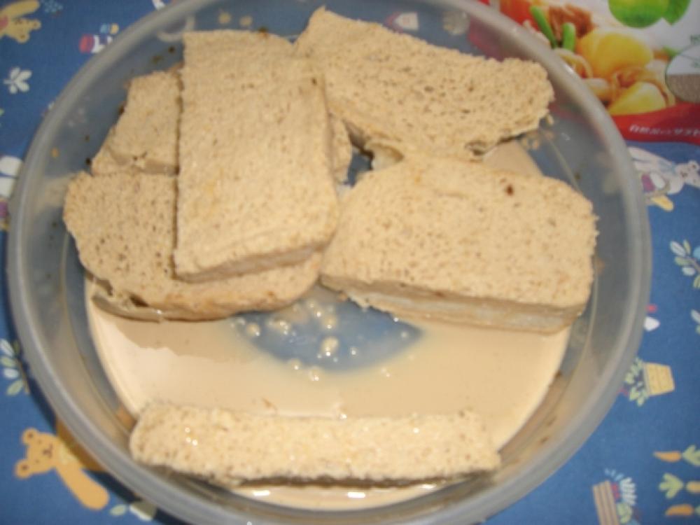![]() ラカントSで作った食パンを牛乳とラカントSとインスタントコーヒー液につける