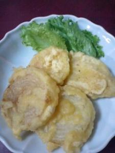 揚げ油を180℃に熱し、キツネ色になりカリッとするまで揚げます。お好みでレタスを添えて盛り付けます。