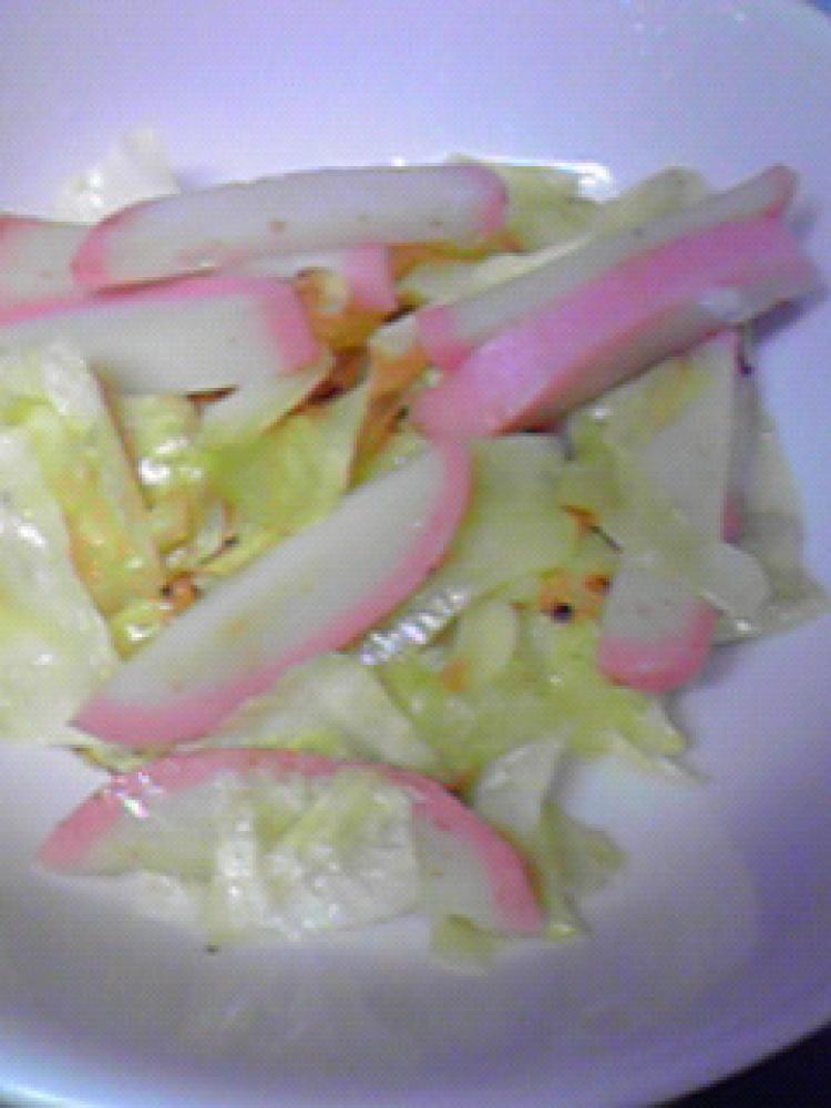 かまぼこは細切りにし、キャベツは食べやすい大きさに切ります。