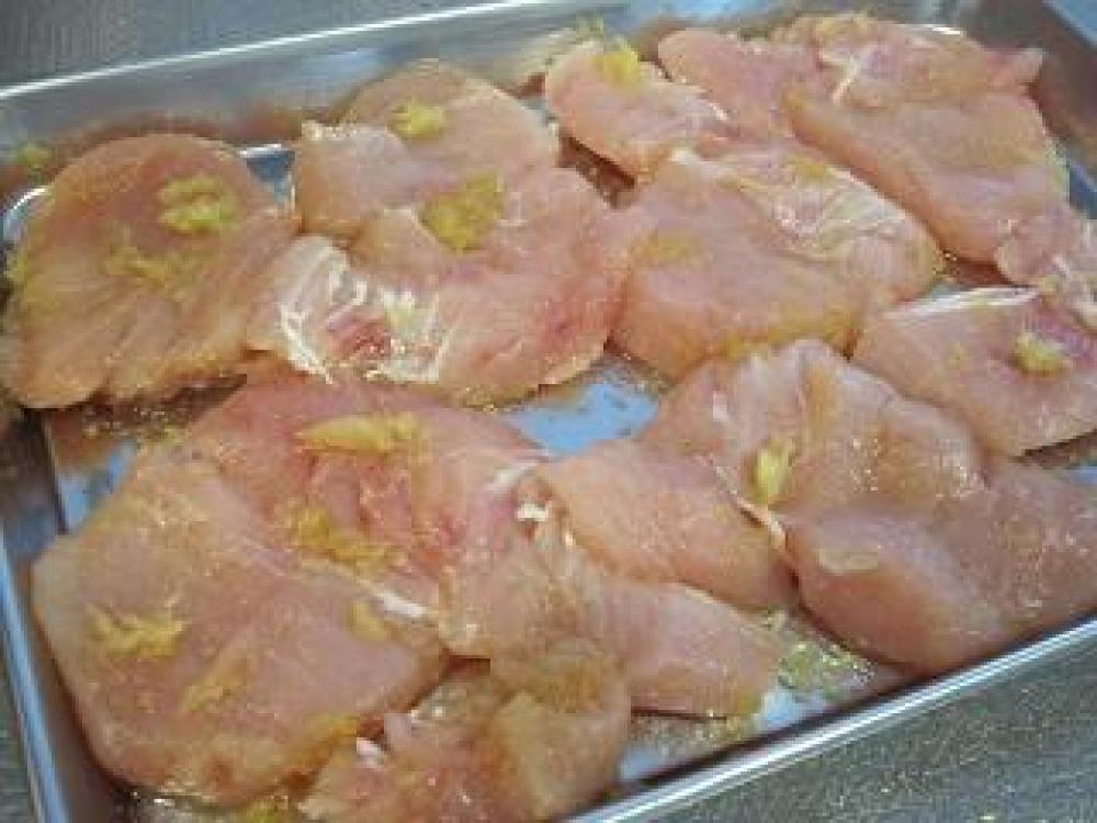 ![]() 1に片栗粉をつけ、油を熱したフライパンで、両面を手早くこんがりと焼き、コショウをふる。お皿に盛りすだちを添える。