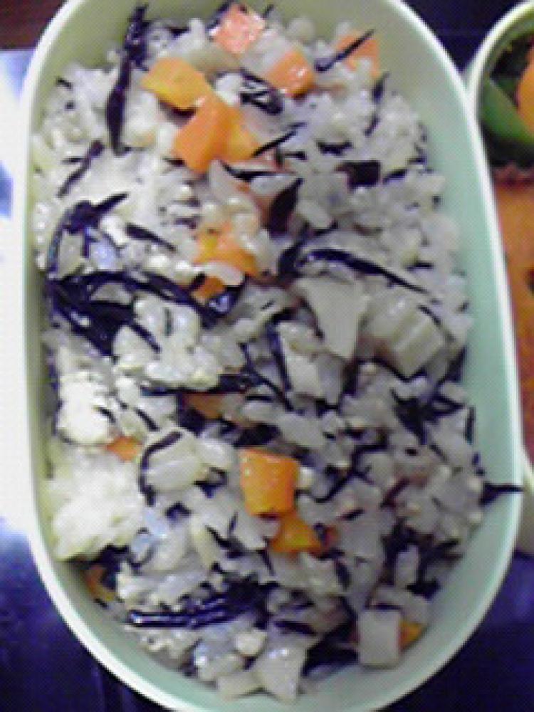 玄米は洗って浸水させておきます。 野菜は小さく切っておきます。 |