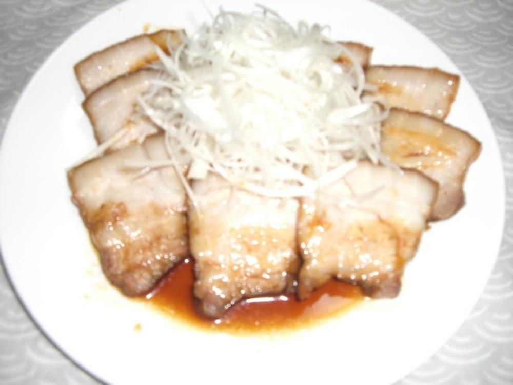 ![]() 水にさらした白髪ねぎを乗せてたれをかける。