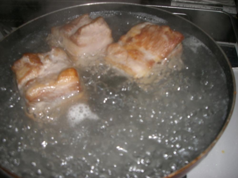 ![]() お湯で30分煮て、お湯を捨てぬるま湯で油を落とします。