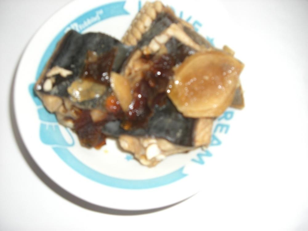 ![]() ぬるま湯でぬめりを取りしょうが、ラカントすき焼きのたれ、水を入れて煮立ったらエイを入れて30分煮込む。