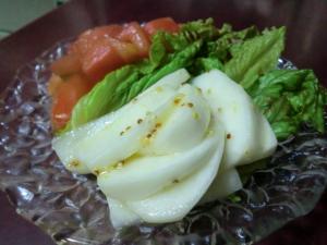 かぶは葉を落し、皮をむいて5mm厚さのくし切りにします。