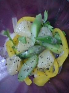 グレープフルーツの果汁、Aを混ぜ合わせドレッシングを作ります。