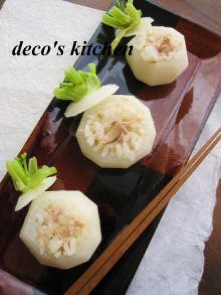 くり抜いた中身の蕪を粗く刻み、*の材料とともに混ぜ合わせる。