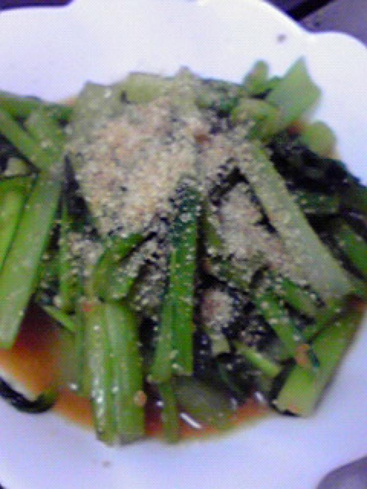しょうゆ糀を加えて小松菜に絡め、すりごまをふって仕上げます。