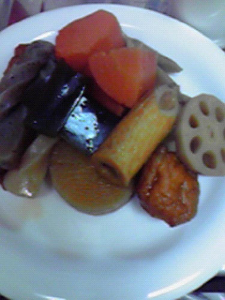 煮立ったら、こんにゃく・ごぼう・れんこんを入れます。