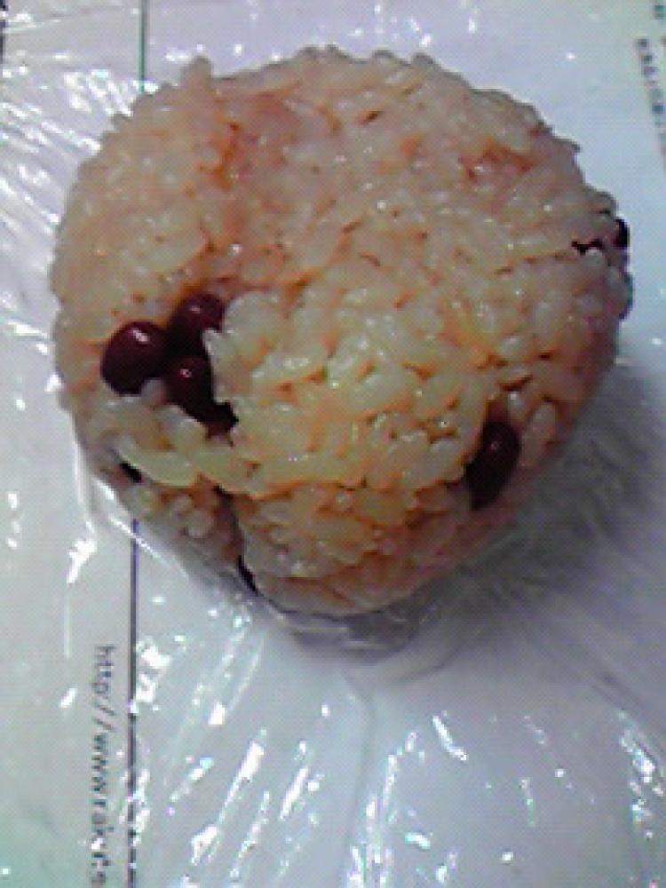ごはんの半量をラップに乗せ、中心に甘栗を入れて、ラップの四隅を集め、おにぎりにします。