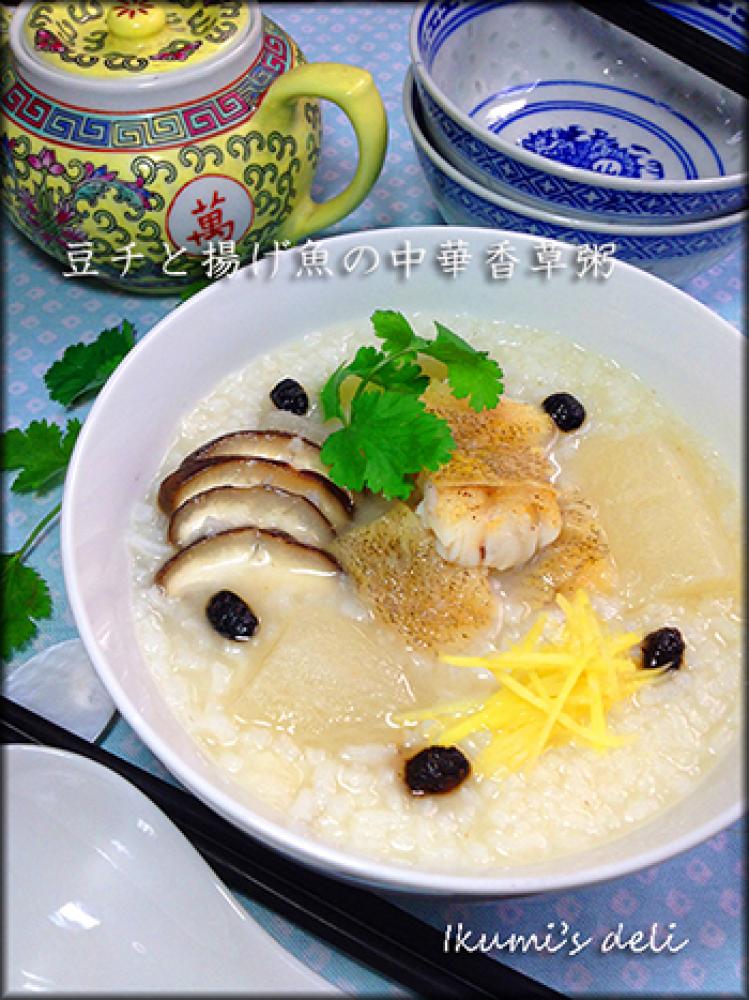 魚は塩をして焼いてから大きめにほぐします。ご飯が柔らかくなったら椎茸を入れて火を通し、豆チと胡椒を入れて軽く混ぜます。