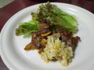 食べやすい大きさにちぎったレタスを添え、肉とニンニクを巻いていただきます。