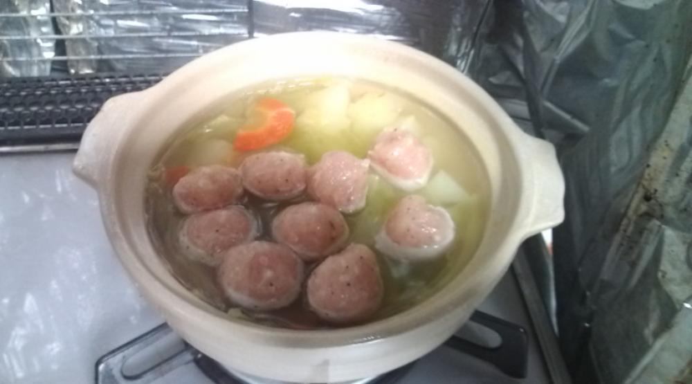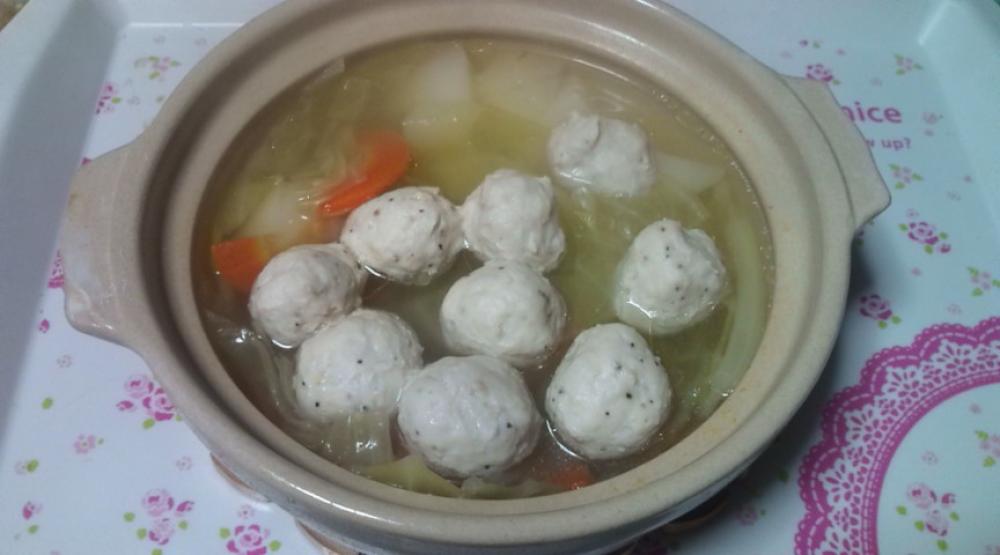団子に火が入ったら塩コショウで味を調え完成です。 |