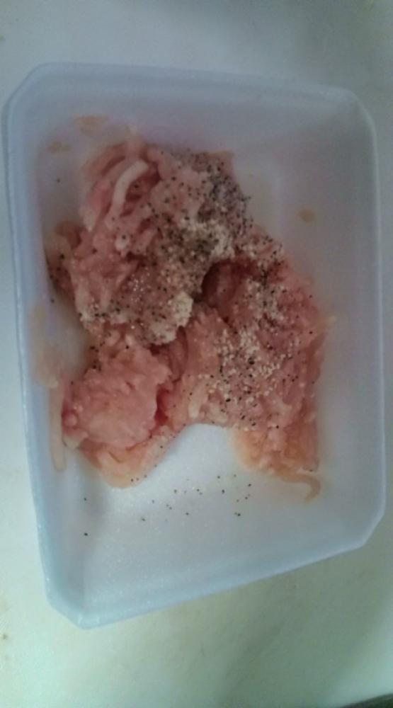 ![]() 鶏ひき肉に塩コショウ・パン粉を混ぜ合わせ