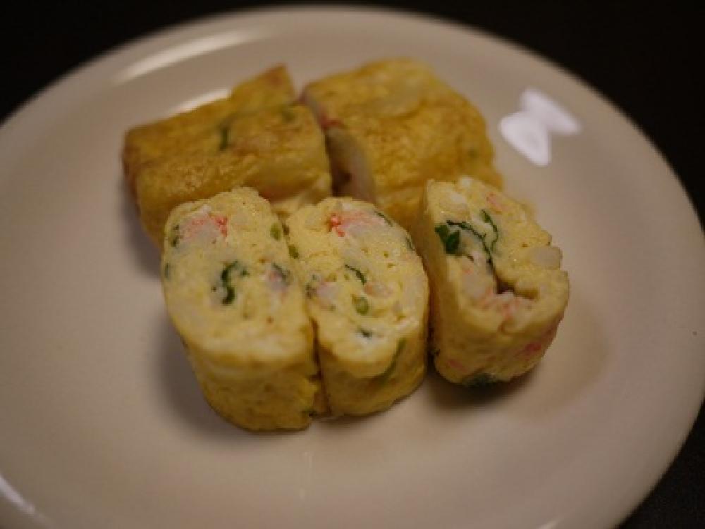 ふんわり♪カニ入り出し巻き玉子 ほうれん草の煮浸し 自家製チャーシュー なるとの白だし煮 海 |